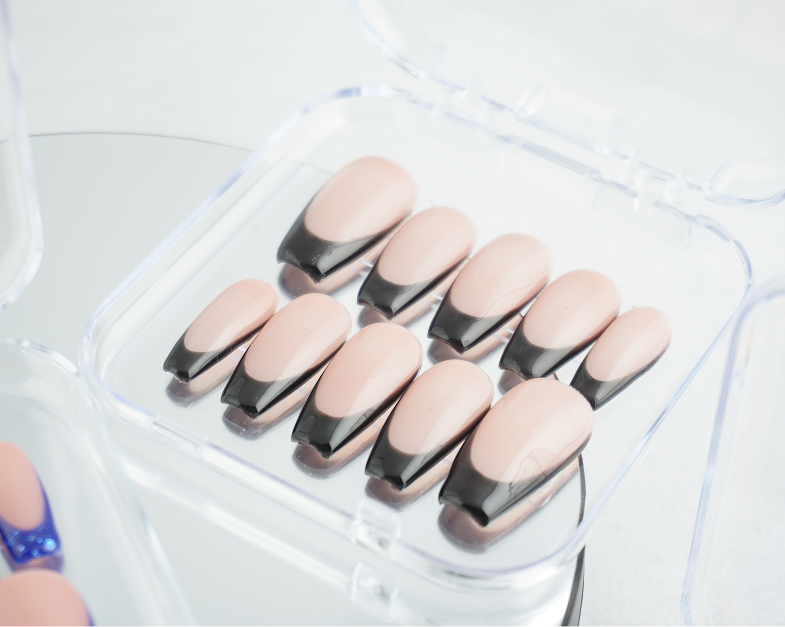 Fedezd fel a Francia Press On Köröm kollekciónkat, ahol a klasszikus nude alap találkozik a modern és izgalmas színárnyalatokkal! 💅✨ A szettek között találsz élénk piros, csillámos kék, elegáns fekete és trendi lila verziót is, így könnyen kiválaszthatod a stílusodhoz illőt!