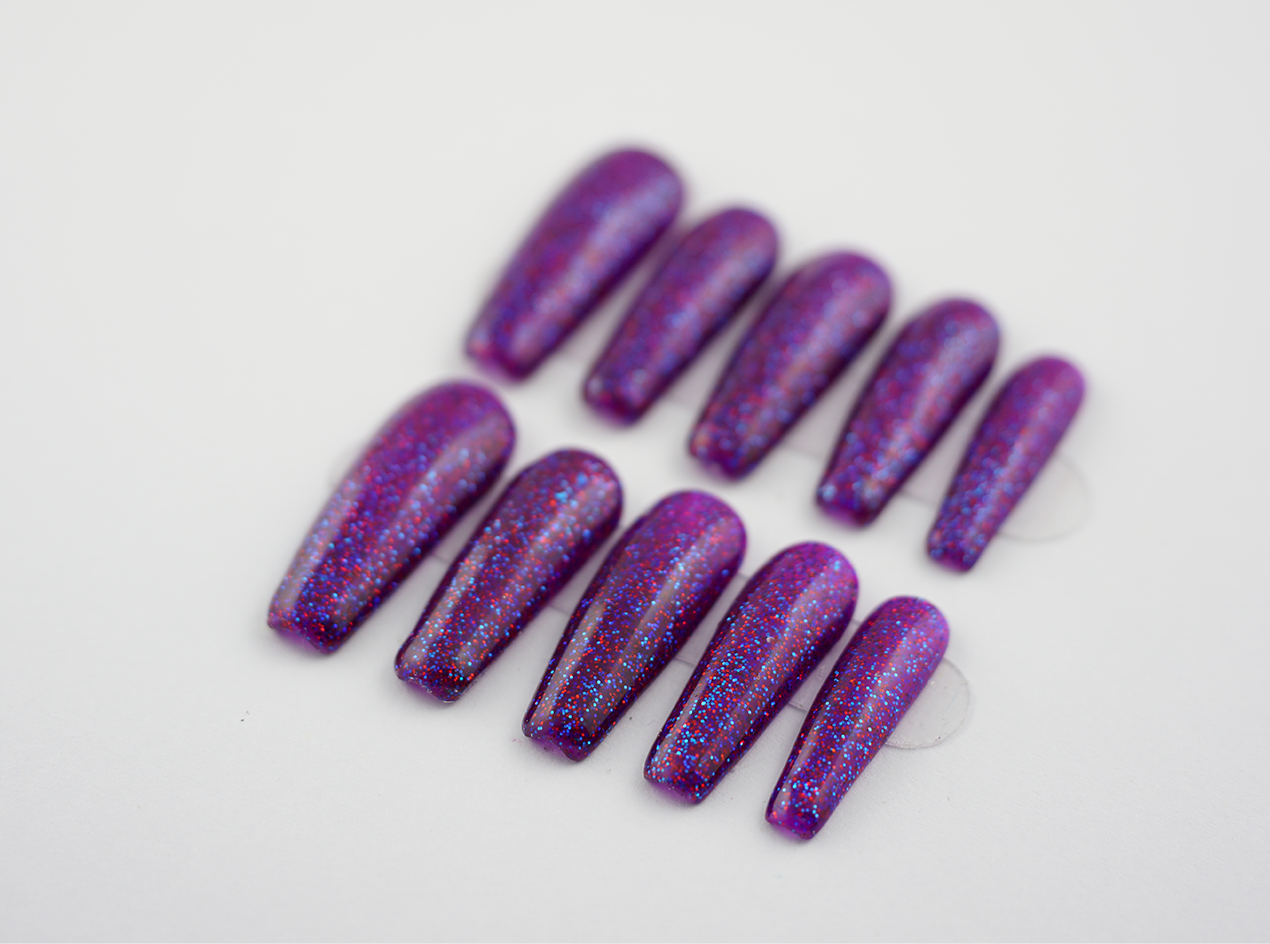Ez a mély ametiszt-lila árnyalat apró, színes csillámokkal díszített, így minden mozdulatod fényt és varázst szór. ✨