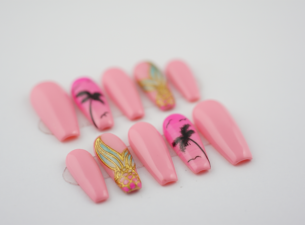 Ez a körömszett nem csak nyári kiegészítő – maga az álomnyaralás dobozba zárva. Tökéletes választás fesztiválokra, tengerparti bulikra, nyaralásra vagy egyszerűen akkor, ha szeretnéd magaddal vinni a trópusi életérzést a mindennapokba.