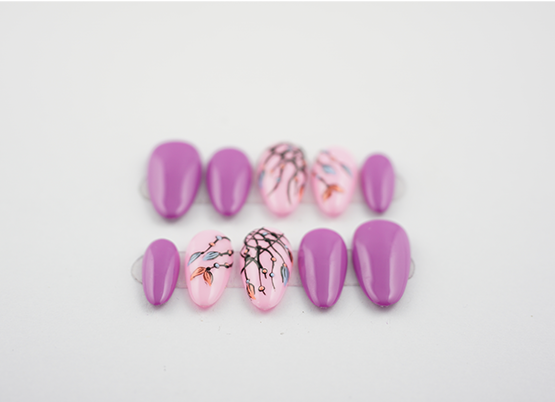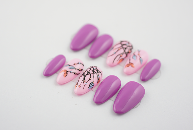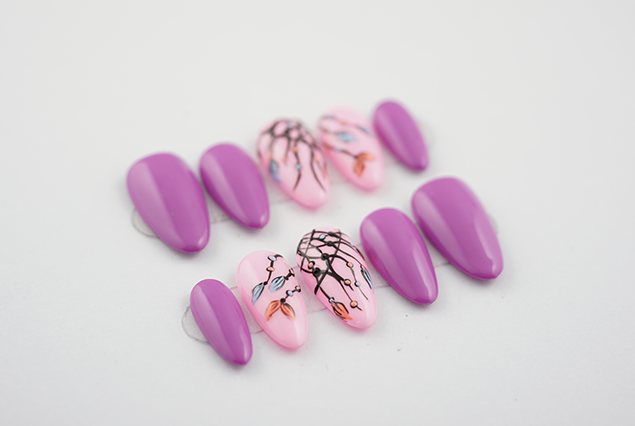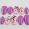 Engedd, hogy a körmeid is meséljenek! Ez a Dreamcatcher press-on köröm szett egyenesen a mély álmaid és szabad szellemed világába kalauzol. 🦋✨ A gyönyörű, mély lila 💜 és a lágy, pasztell rózsaszín 🌸 tökéletesen harmonizálnak egymással. A rózsaszín alapú körmöket bonyolult, fekete szálak és finom, színes levelek🌿🔮 díszítik, amik egyedi és művészivé teszik a szettet – mintha igazi álomfogók 🕸️ ékesítenék a kezeidet. Ideális választás, ha valami különlegesre és spirituális darabra vágysz, ami tökéletesen passzol a bohém vagy egyedi stílusodhoz. 💖