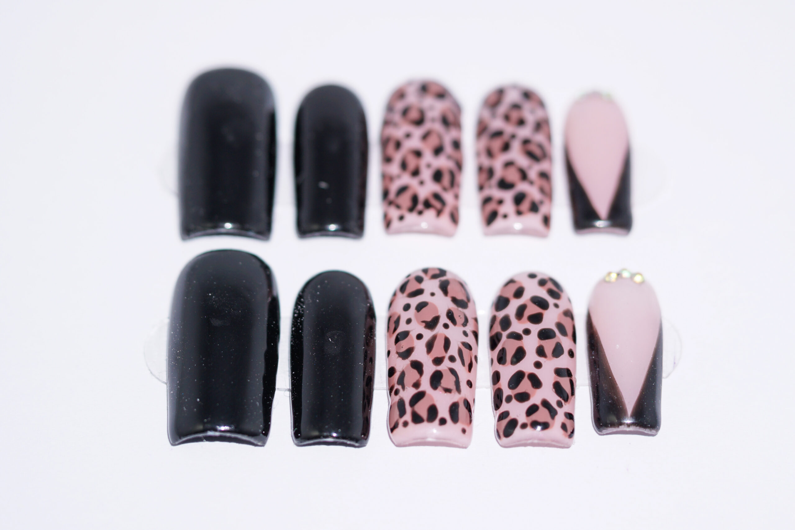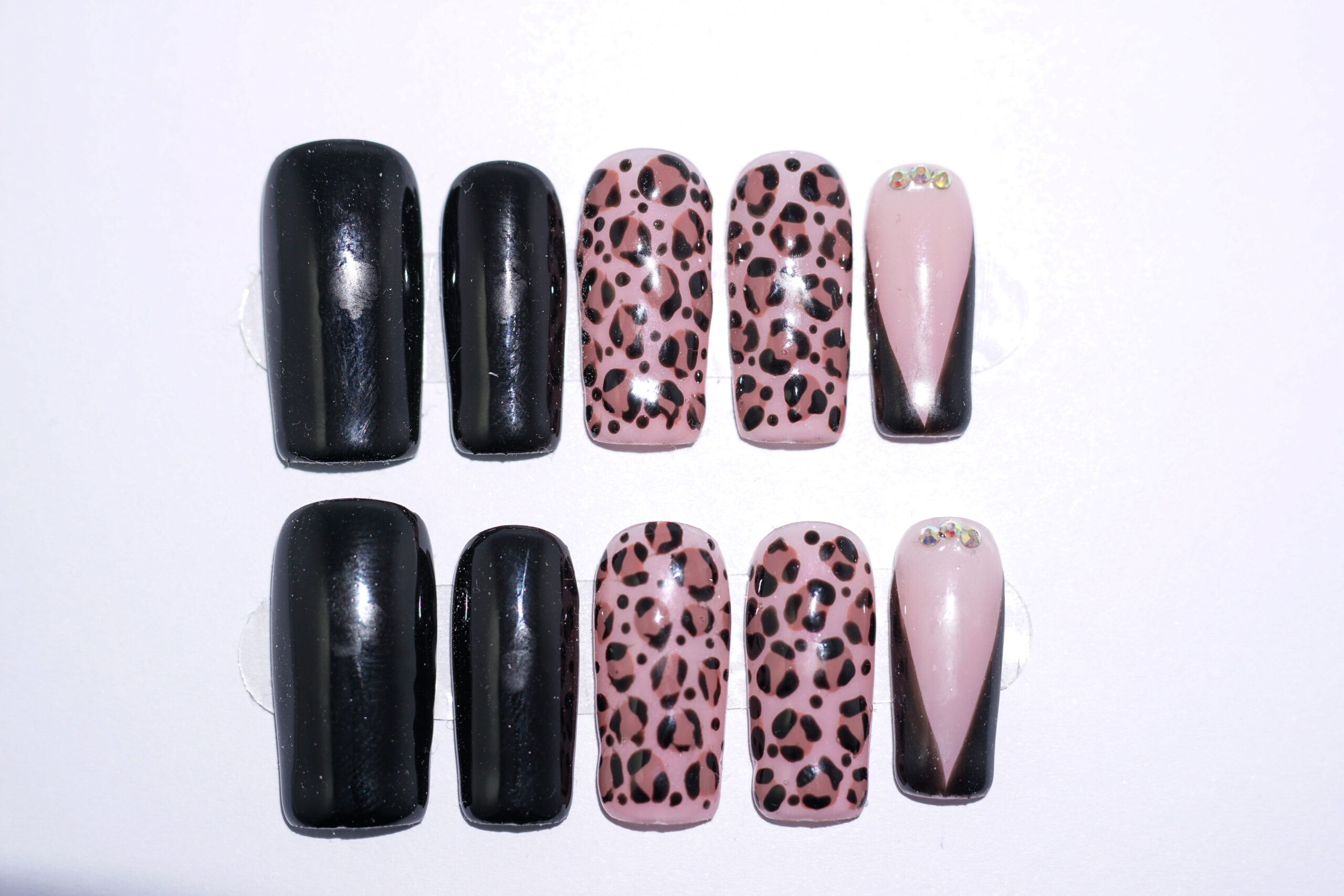 A Wild Elegance press on körömszett a klasszikus fekete eleganciát és a vad leopárdmintás stílust ötvözi egy hihetetlenül nőies, magabiztos megjelenésért. 🔥